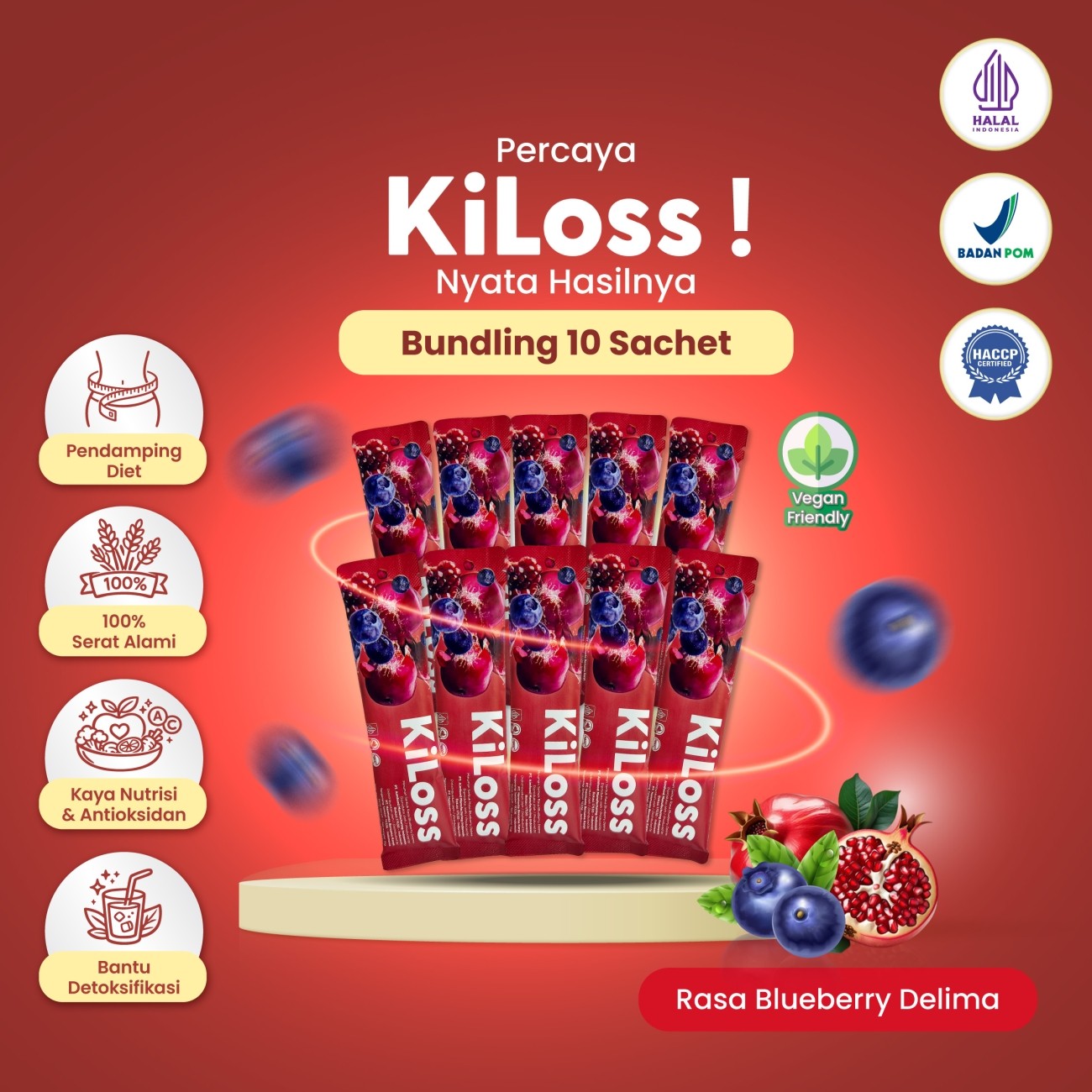 KiLoss Fiber - Rasa Blueberry Delima - Minuman Sehat Pendamping Diet - 15g - 10 Sachet