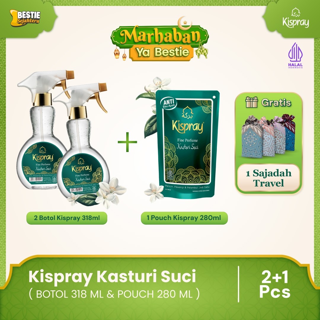 Paket Bundling - Kispray Kasturi - 2 Botol - 318 mL + 1 Pouch 280 mL - Gratis 1 Sajadah Travel