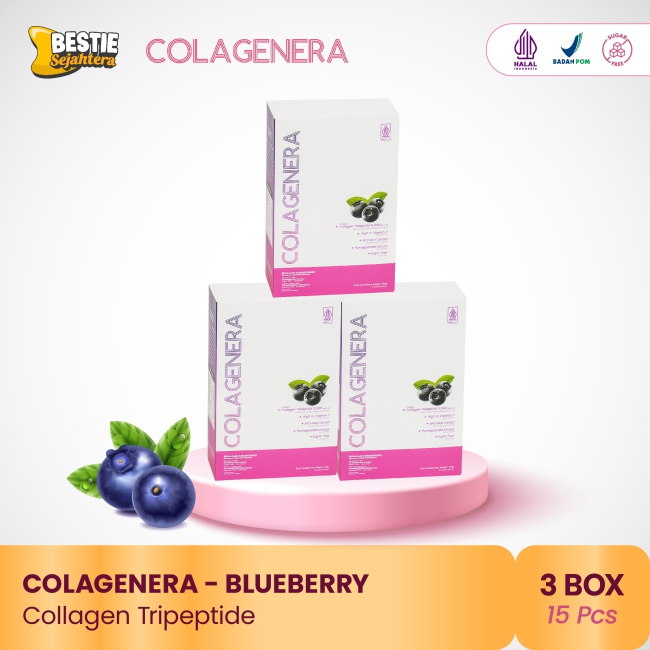 Bundling 3 Box-COLAGENERA- Collagen Serbuk -Rasa Blueberi Tripeptide 5000mg- Paket 15 Hari /15 sct